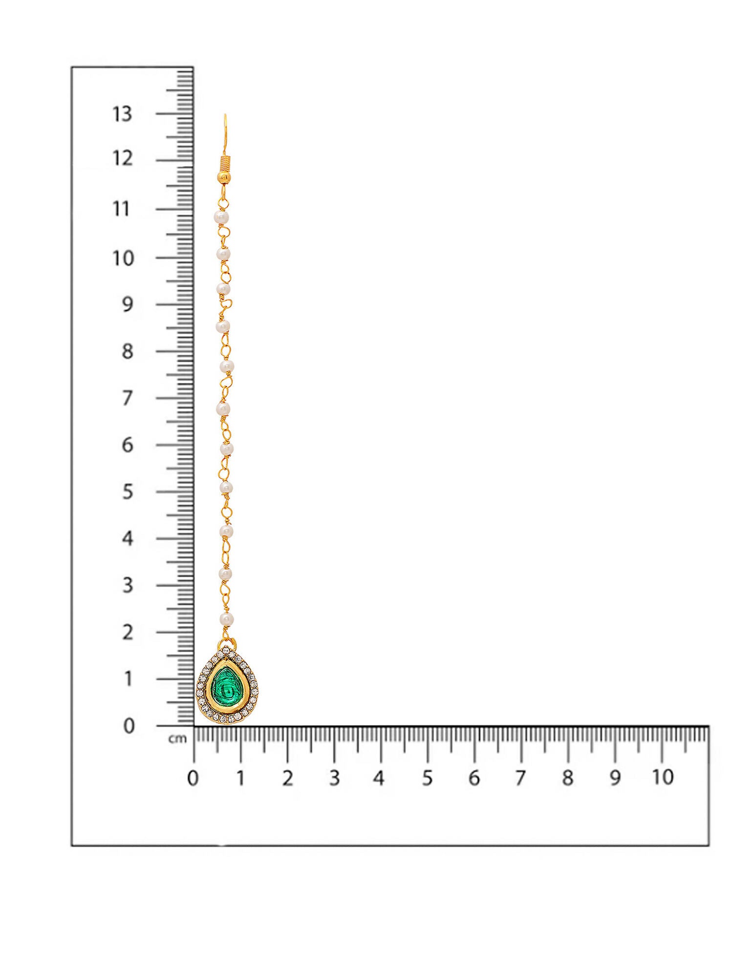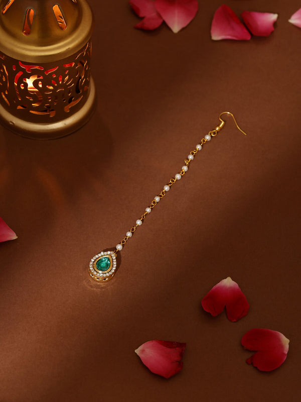 Ruby Raang Green Tear Drop Green Kundan Maang Tikka - Onesize