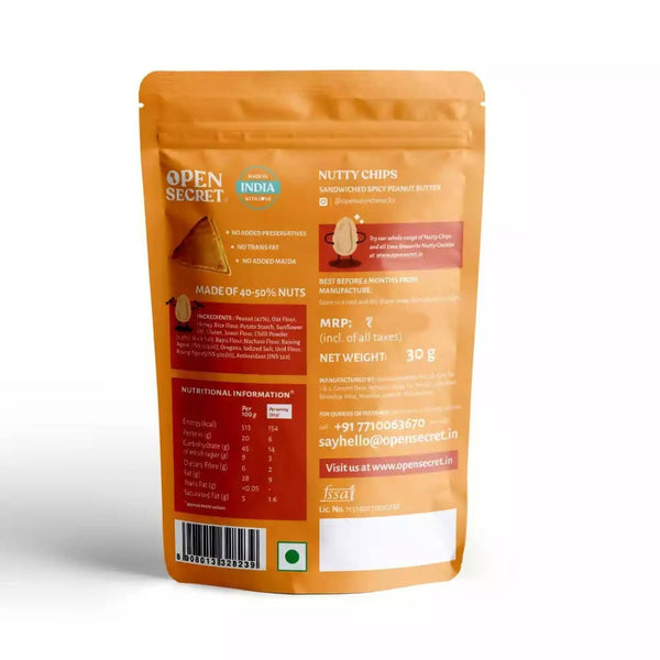 Open Secret Spicy Peanut Butter Nutty Chips - 30 gm - Pack of 9