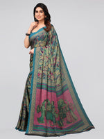 Kalini Turquoise Blue & Green Poly Chiffon Saree - Distacart