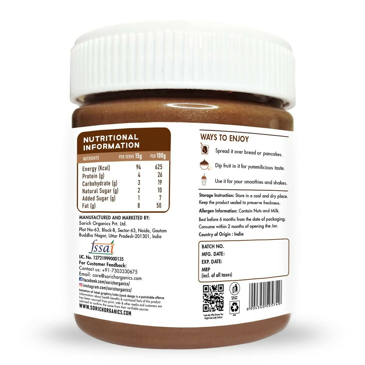 Sorich Organics Peanut Butter Chocolate Flavour Crunchy Ingredients: 100% Dry Roasted PeanutsLegal Disclaimer: Product images are for illustrative ...
