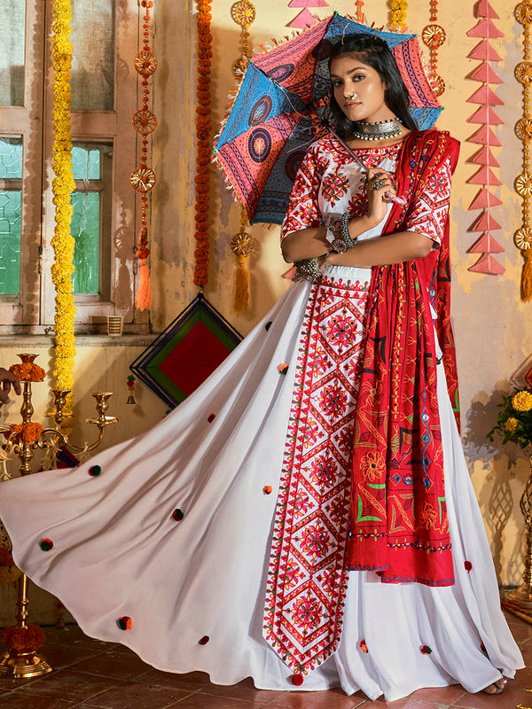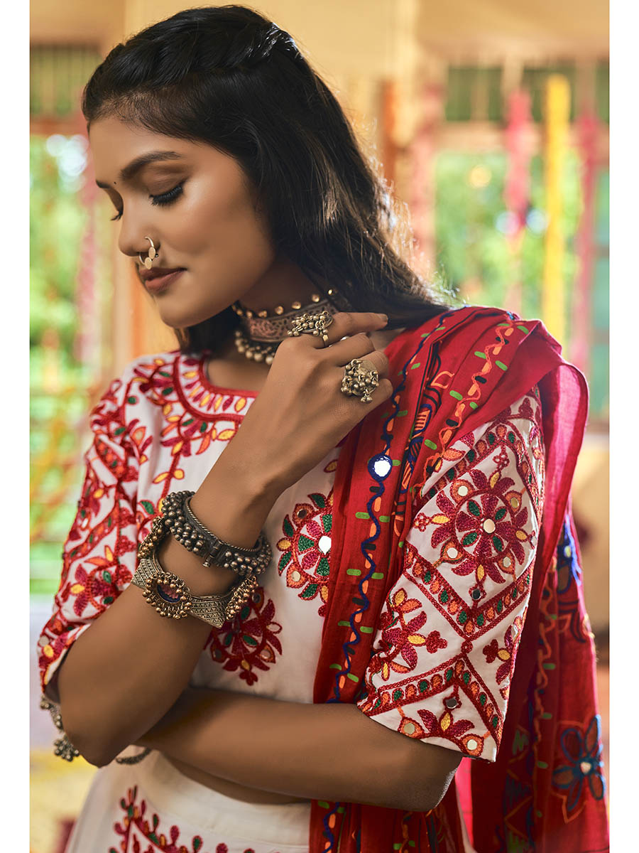 Myra White Maslin Cotton Embroidered Navratri Special Lehenga - Distacart