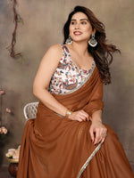 Partywear traditional Georgette Brown Fancy Saree - Anbazaar - Free Size