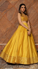 Pomcha Rabia Yellow Cotton Silk Lehenga Set