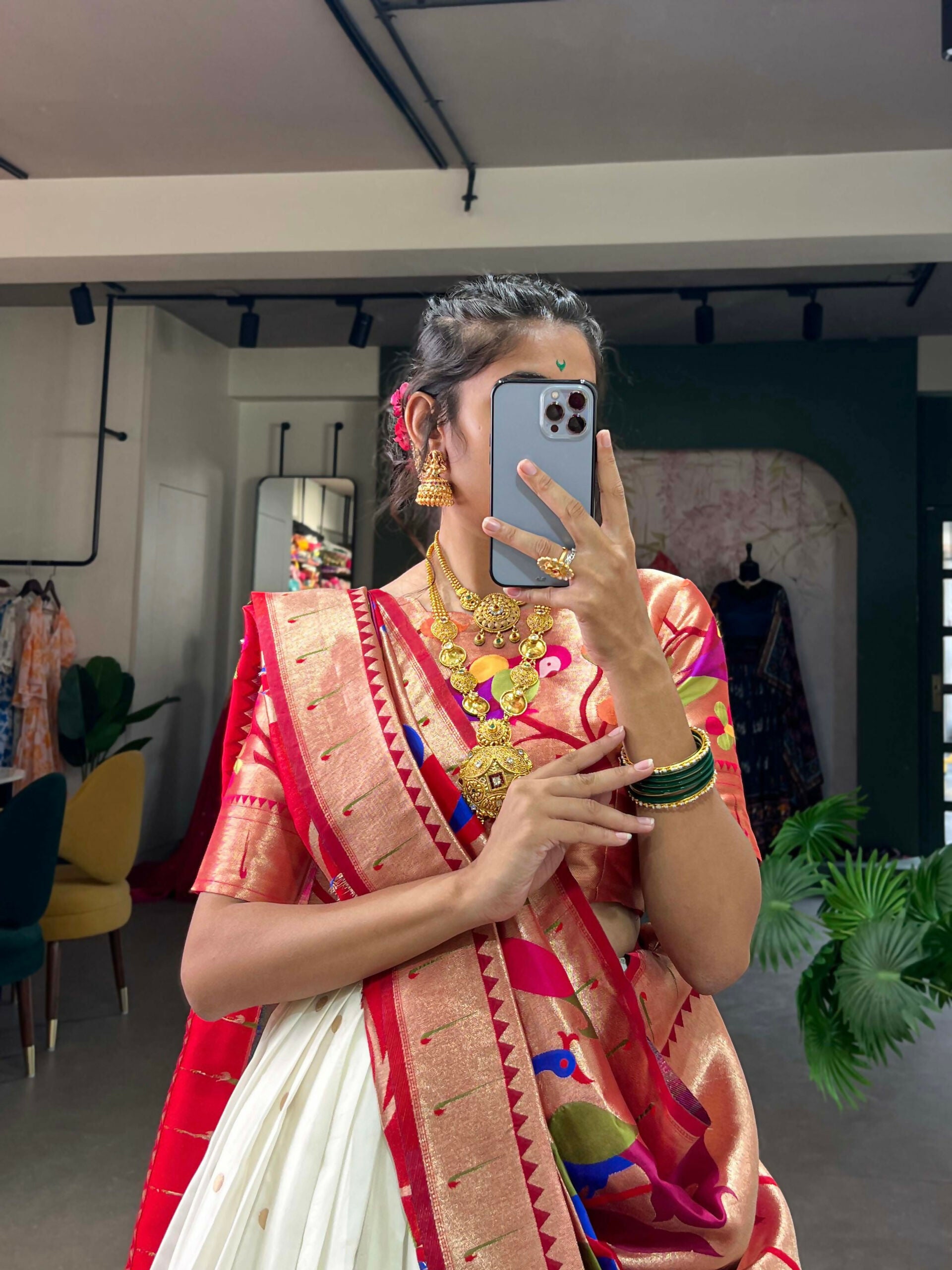 Vastranavya Perfect Classic And Contemporary Fashion Paithani Lehenga Choli - White