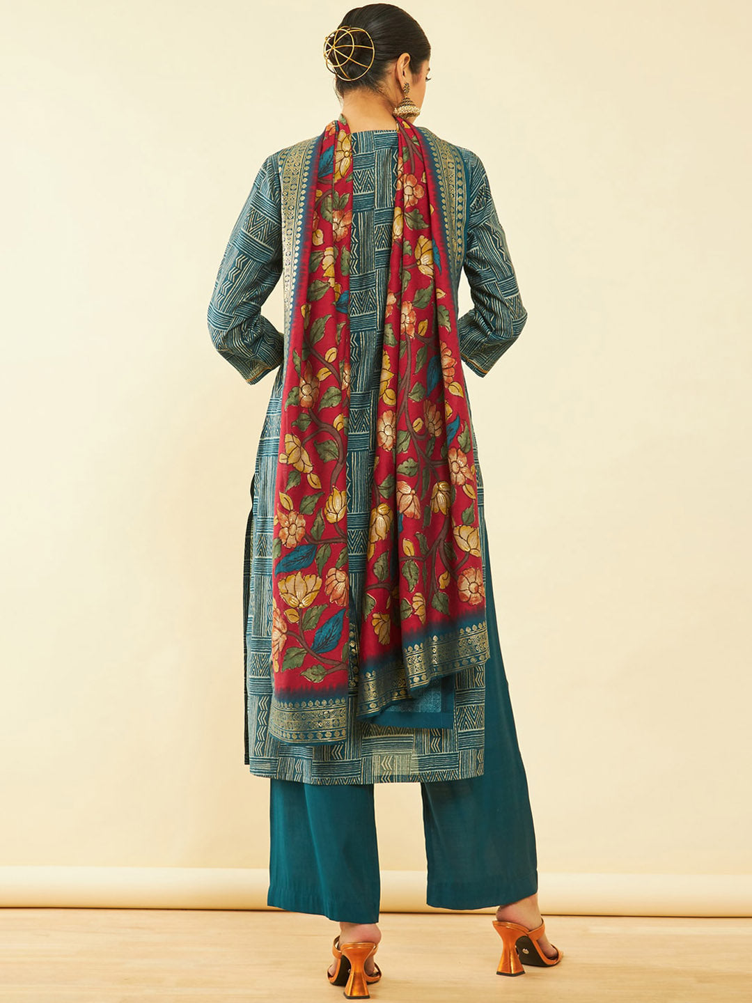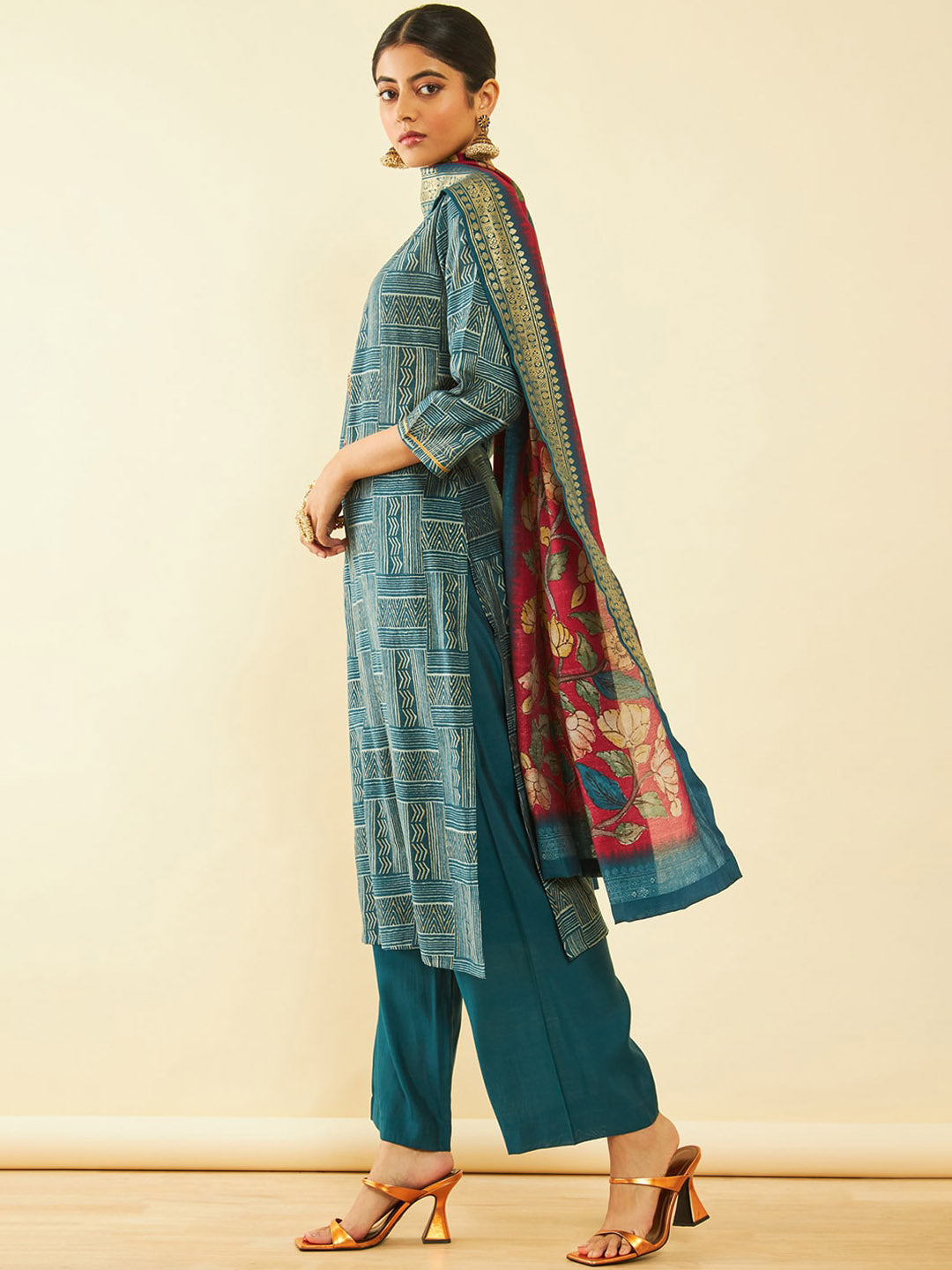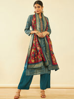 Soch Geometric Printed Regular Sequinned Kurta With Palazzos & Dupatta Product Details Teal blue & red printed Kurta with Palazzos with ...