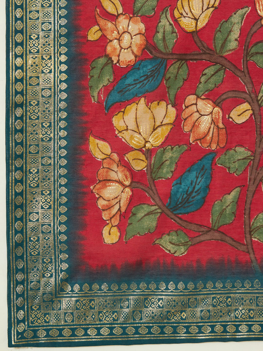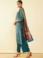Teal blue & red printed Kurta with Palazzos with dupatta
