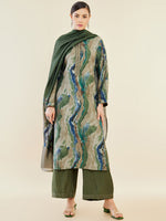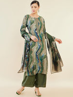 Soch Green Abstract Printed Regular Straight Kurta & Palazzos With Dupatta - M