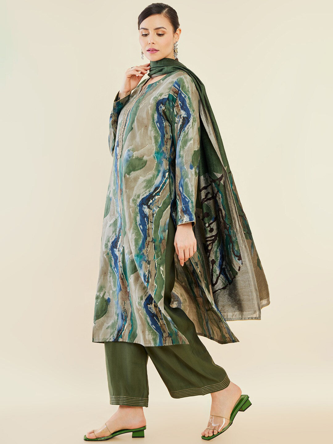 Soch Green Abstract Printed Regular Straight Kurta & Palazzos With Dupatta Product Details Green printed kurta & palazzos with dupattaKu...