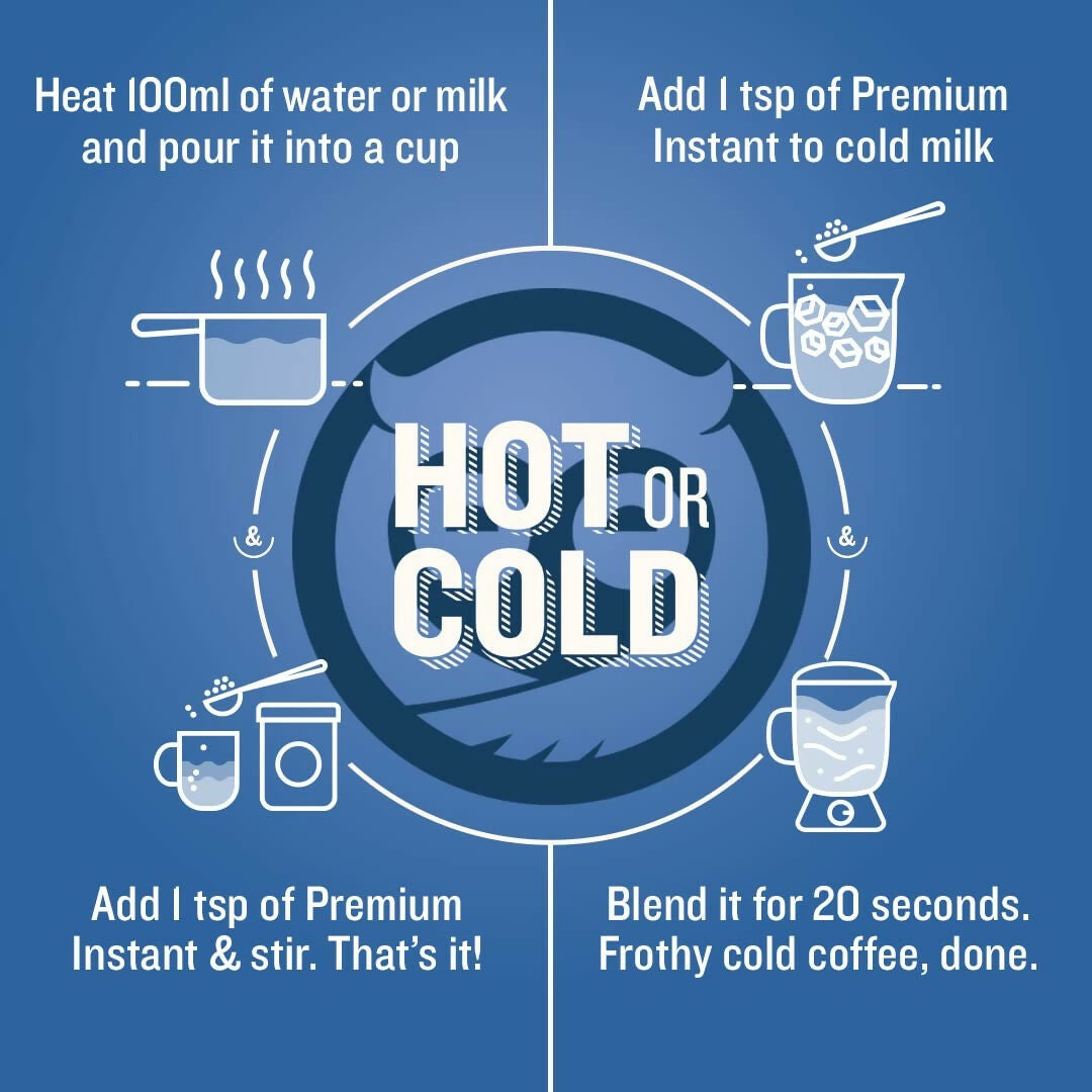 YOU'VE HAD IT BUT NOTHING LIKE THIS Instant coffee that is unlike anything you’ve ever had before. Made with 100% Premium Arabica beans, each tin contains Soluble Coffee Crystals and Roasted Ground Coffee. All you have to do is add hot or cool milk/water. Great for making a bold black coffee, or a frothy Cool Coffee. No preservatives or added sugar. Makes up to 50 delicious cups
