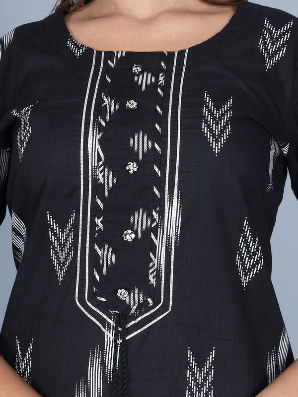 Swasti Women Black Tribal Flared Sleeves Thread Work Floral Anarkali Kurta Product Details Colour: black Tribal woven design Boat neck ...