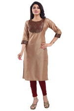 Snehal Creations Beige Cotton Silk Kurti Top