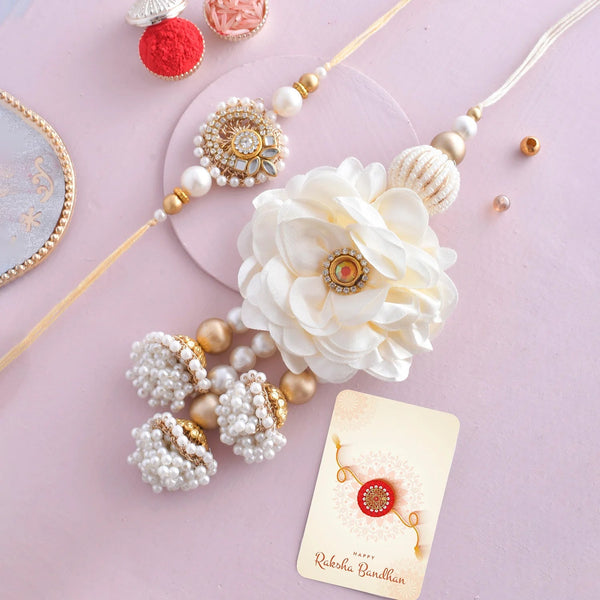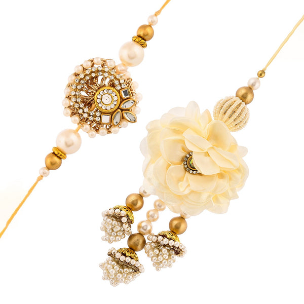 trueBrowns X Voylla White Pearls And Kundan Gems Bhaiya Bhabhi Lumba Rakhi