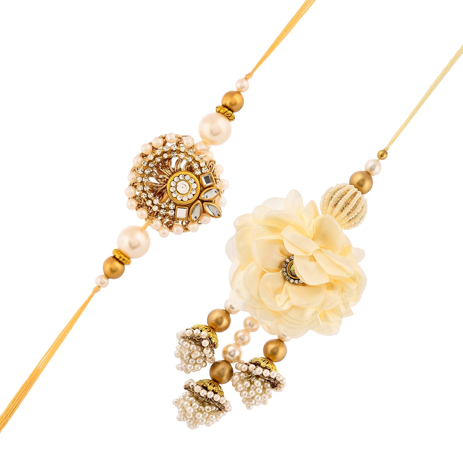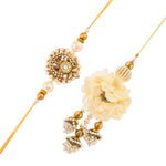 trueBrowns X Voylla White Pearls And Kundan Gems Bhaiya Bhabhi Lumba Rakhi - Freesize