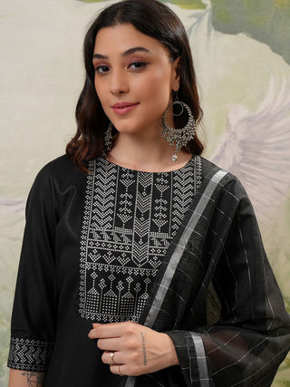 Vishudh Black Yoke Design Thread Work Kurta with Trouser & Dupatta - Distacart