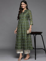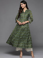 Varanga Women Green Bandhani Printed Anarkali Kurta - S