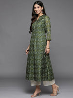 Varanga Women Green Bandhani Printed Anarkali Kurta
