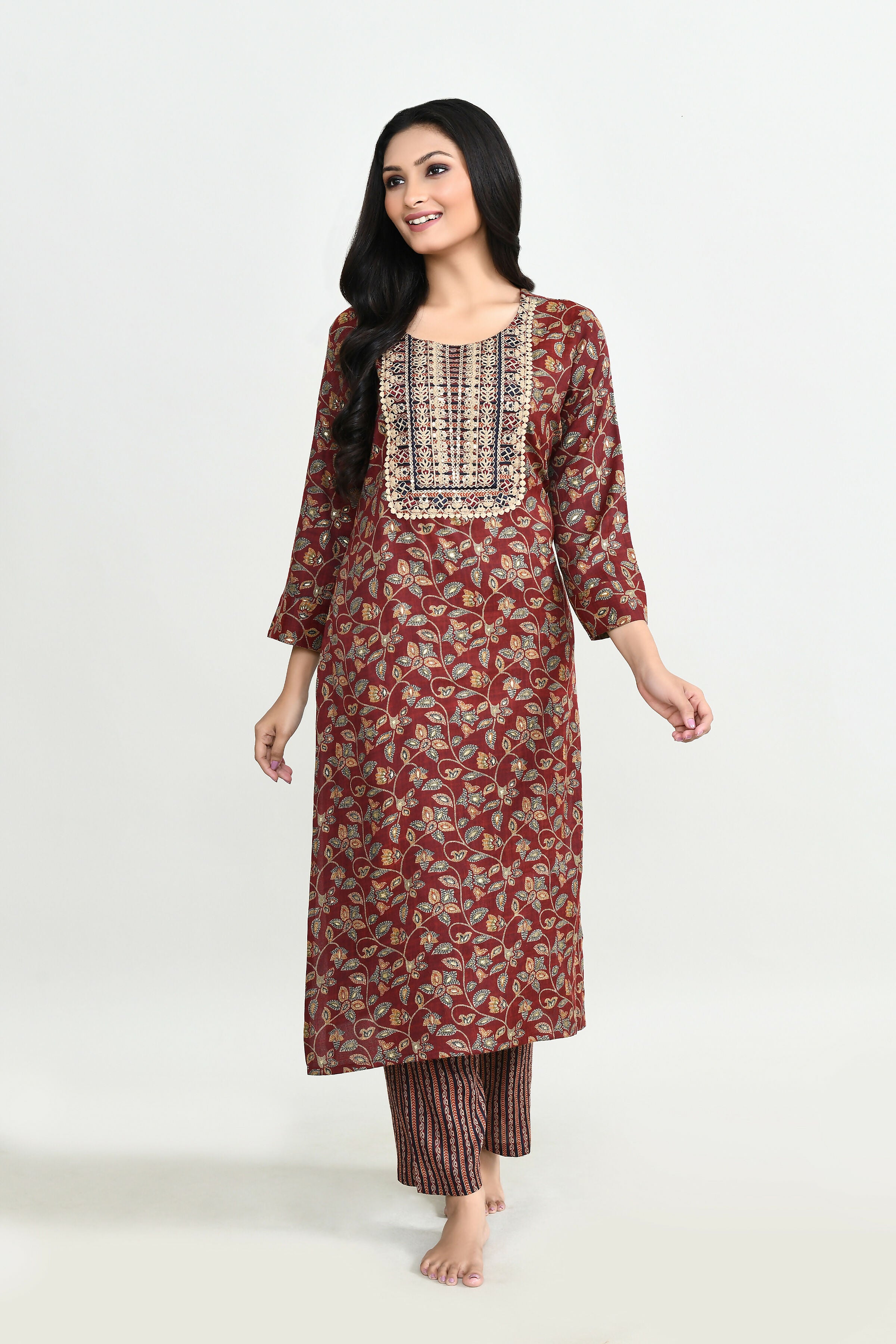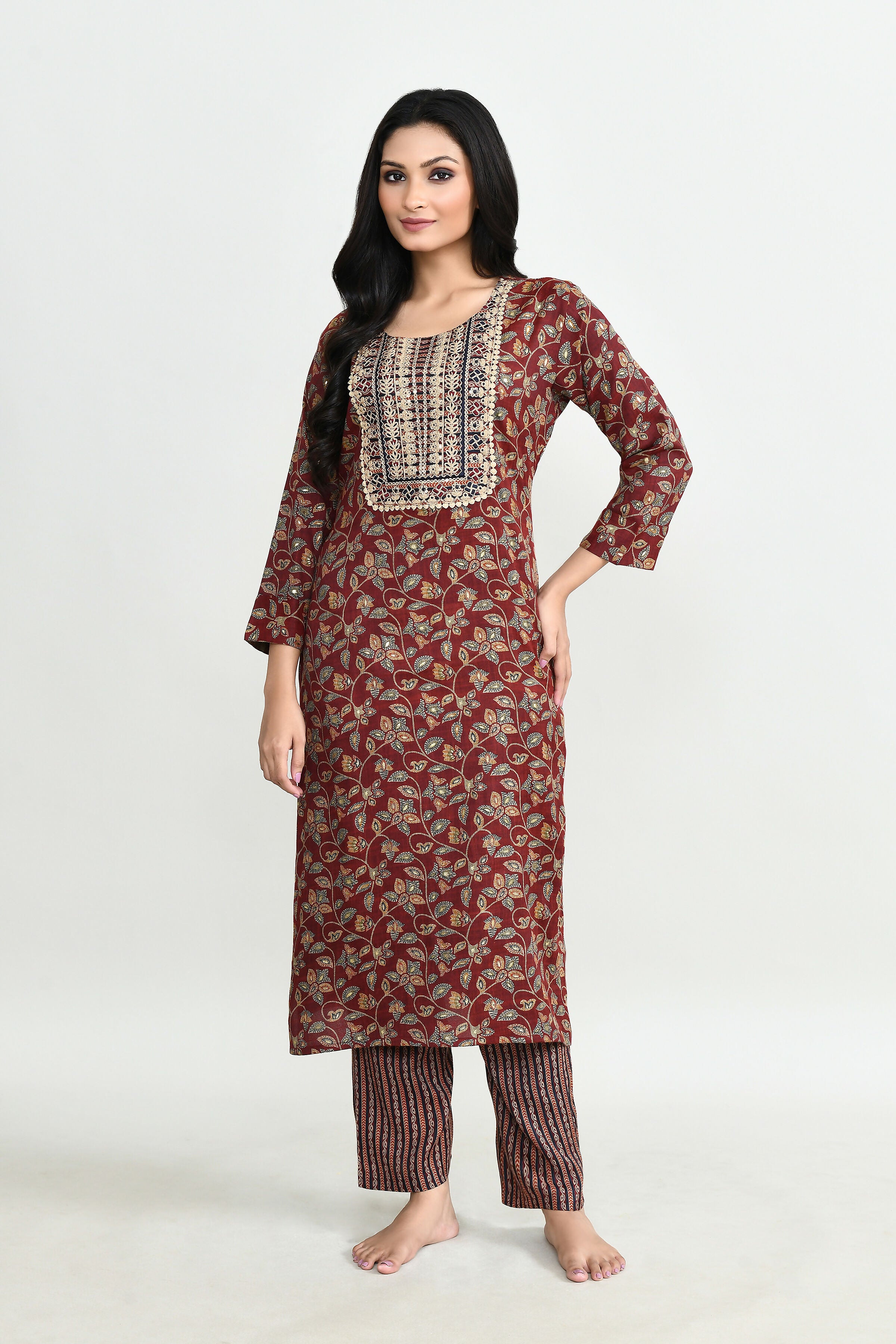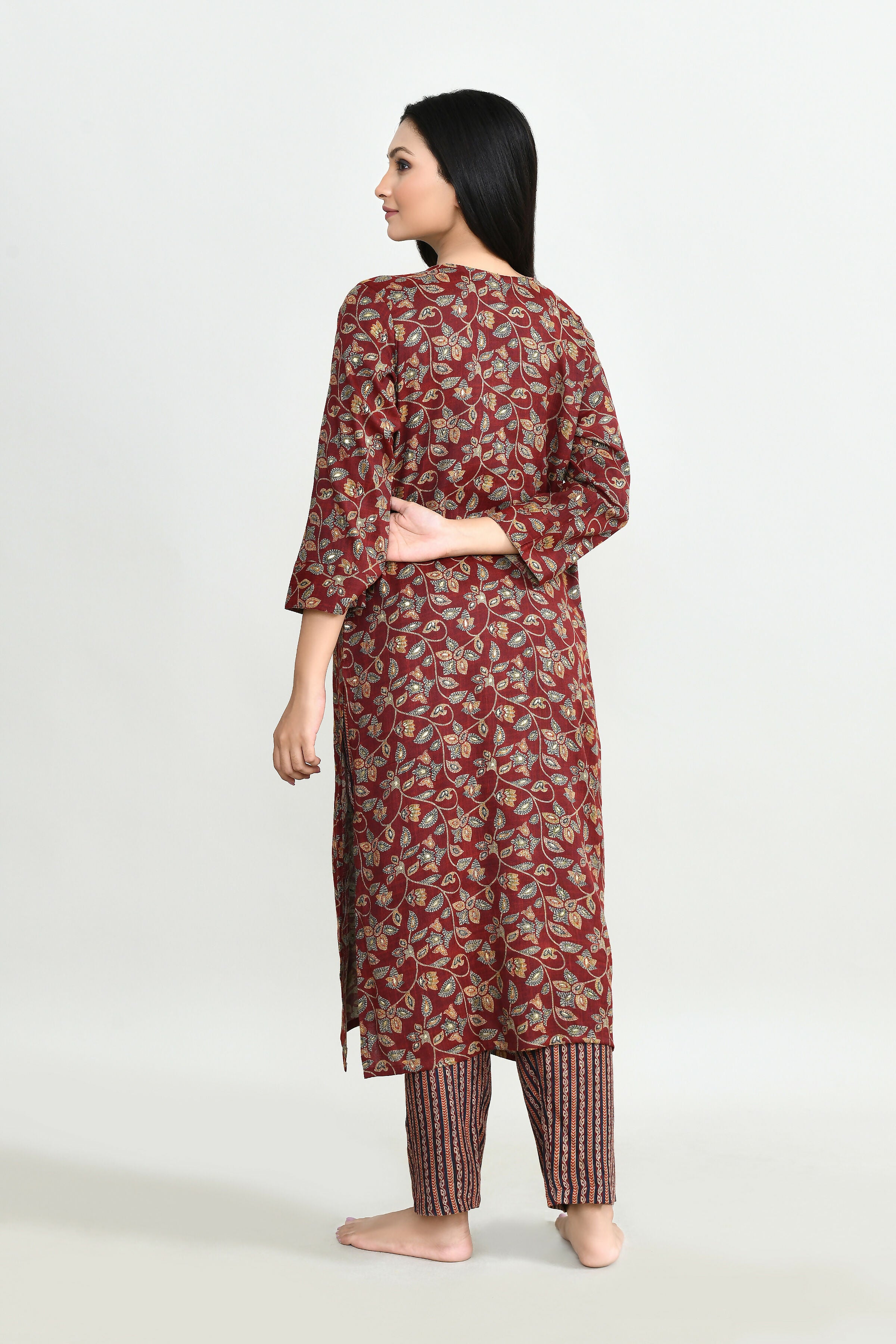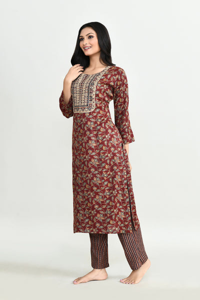 Joban Fashion Elegant Cotton Maroon Kurta Set