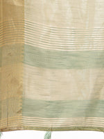 Astita Elegant Light Green Linen Saree with Golden Zari Border & Rich Pallu | Soft Drape | Festive & Office Wear - Default Title