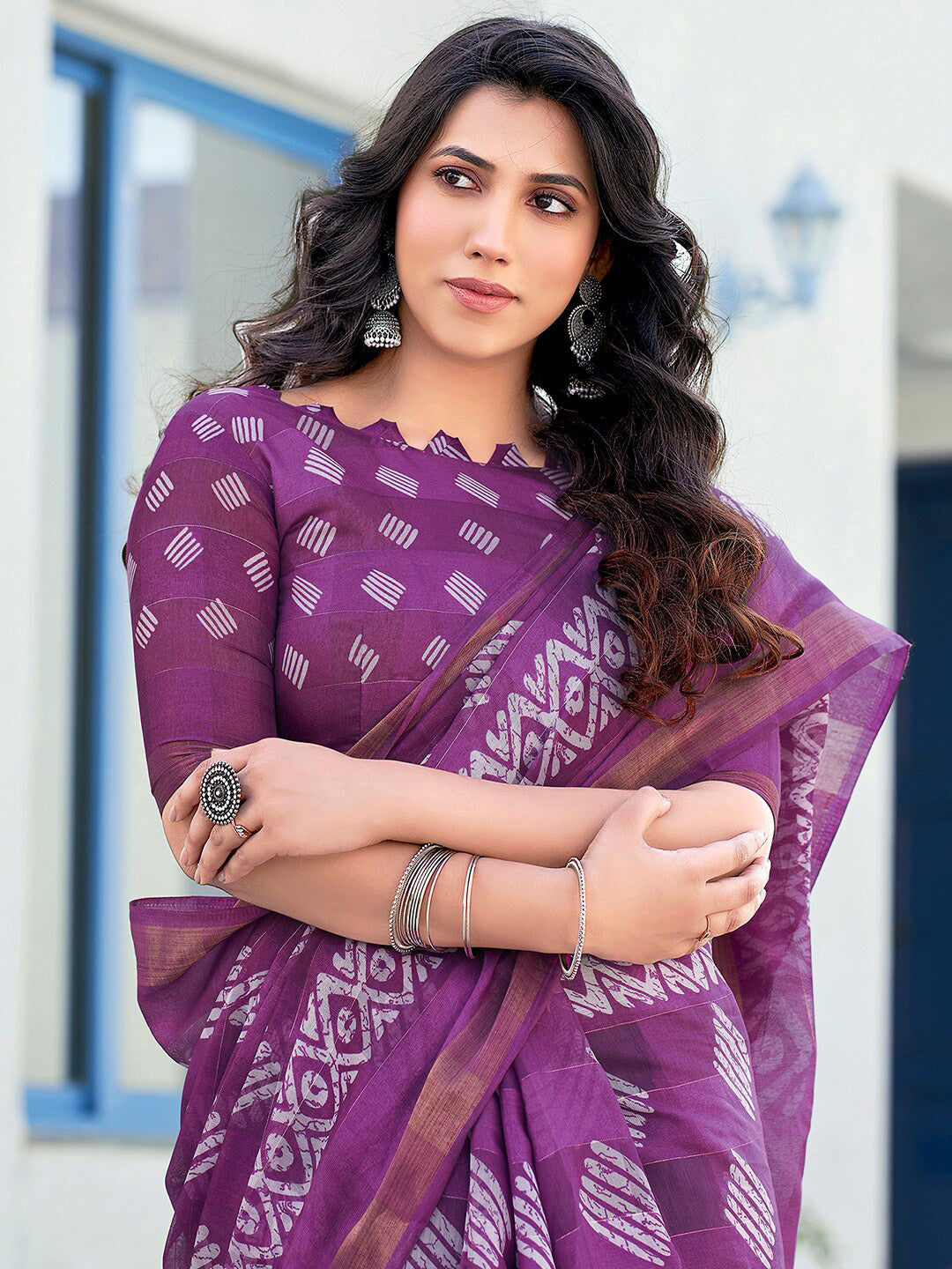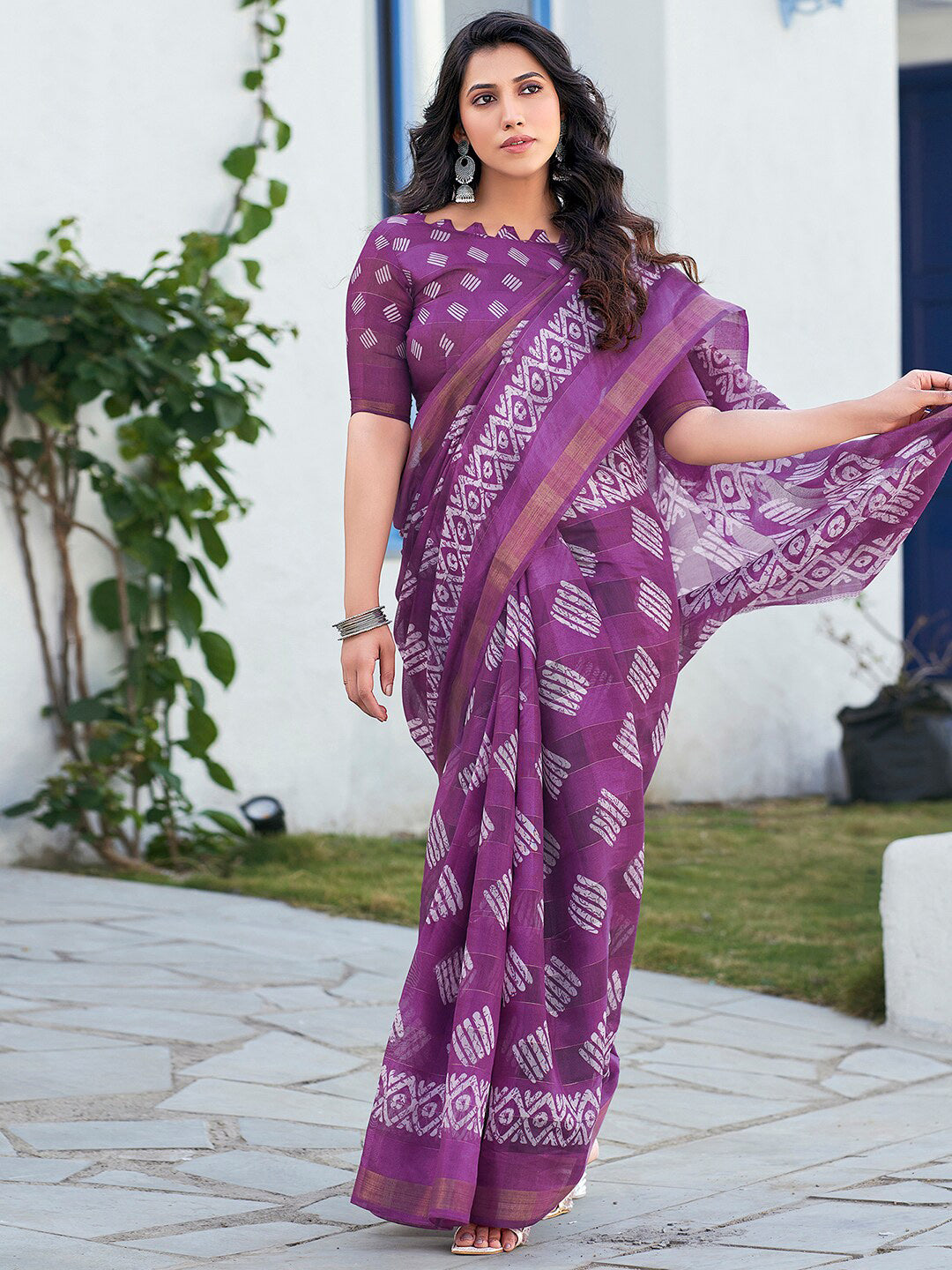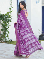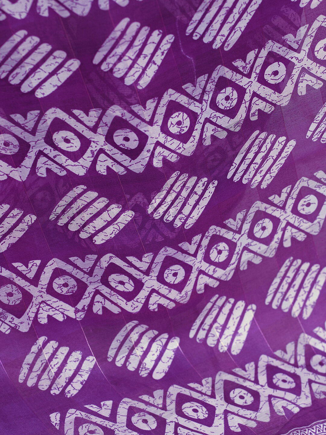 Kalini Batik Printed Zari Bagh Sarees Product Details Design Details Purple and white bagh saree Batik printed saree with zari border  Has Zar...