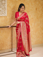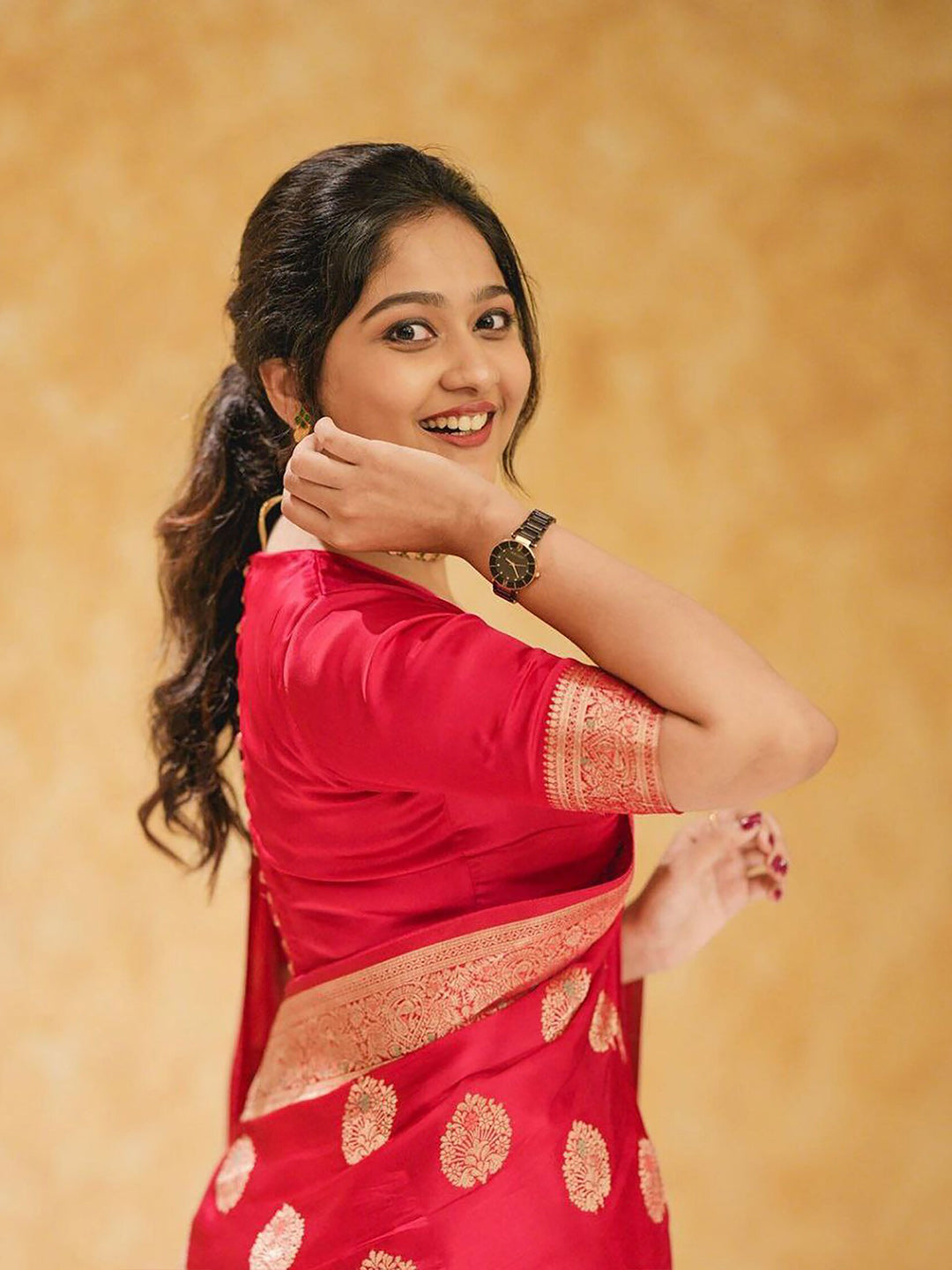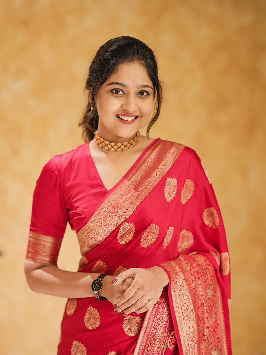 • Red & gold toned banarasi saree
