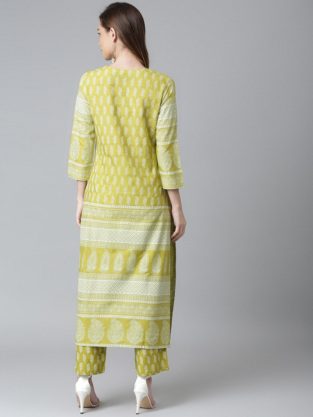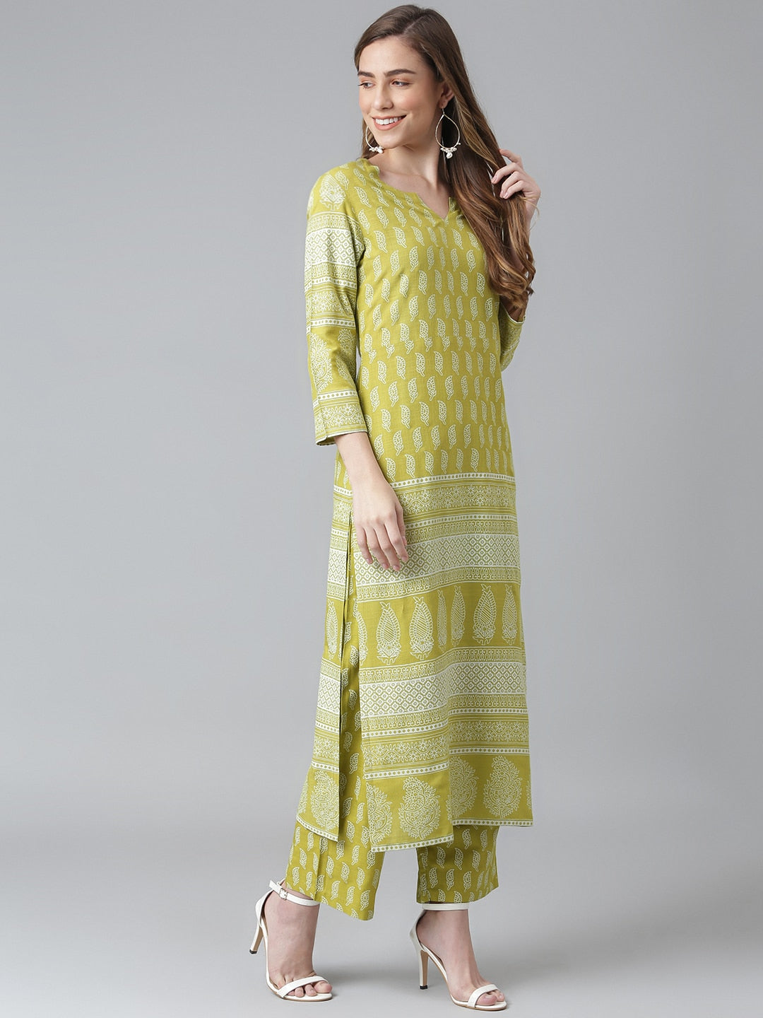 Khushal K Women Green Printed Kurta with Palazzos - S