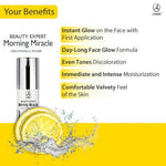 • Younger-looking blemish-free skin that glows like it’s lit from within, looks plump & feels soft. Our best Vitamin C serum delivers all this and more. Morning Miracle not only addresses the user’s concerns, it gives them their best skin yet. It's a concoction of flawless beauty, sprinkled with magic.