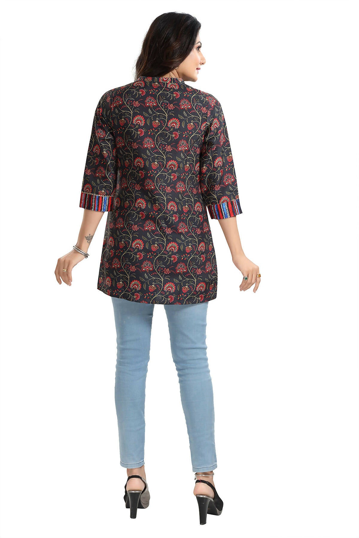 Snehal Creations Blissful Black Rayon Short Kurti Tunic Top Color: Black Material: Viscose Blend Legal Disclaimer: Product color may slightly var...