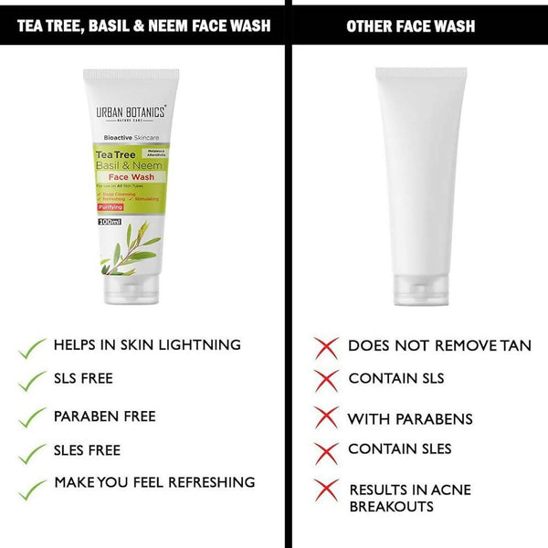 Urban Botanics Tea Tree, Basil & Purifying Neem Face Wash - Distacart