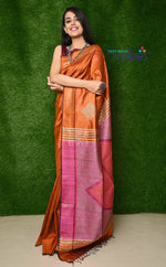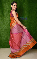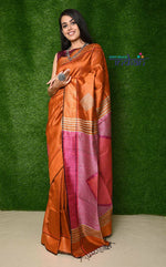 Very Much Indian Handwoven Raw Silk Dupion Saree - Orange With Pink Pallu