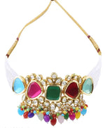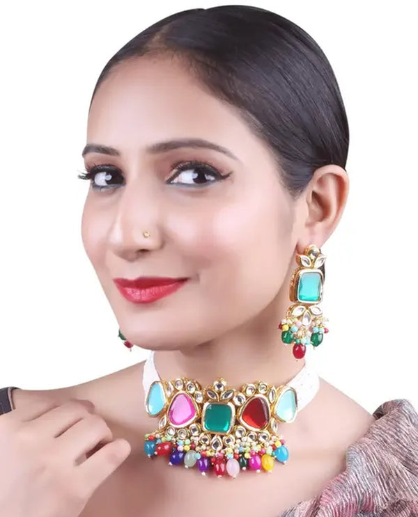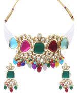 Jewel City Elegant Multi Gold Indian Kundan Choker Necklace and Earring Set