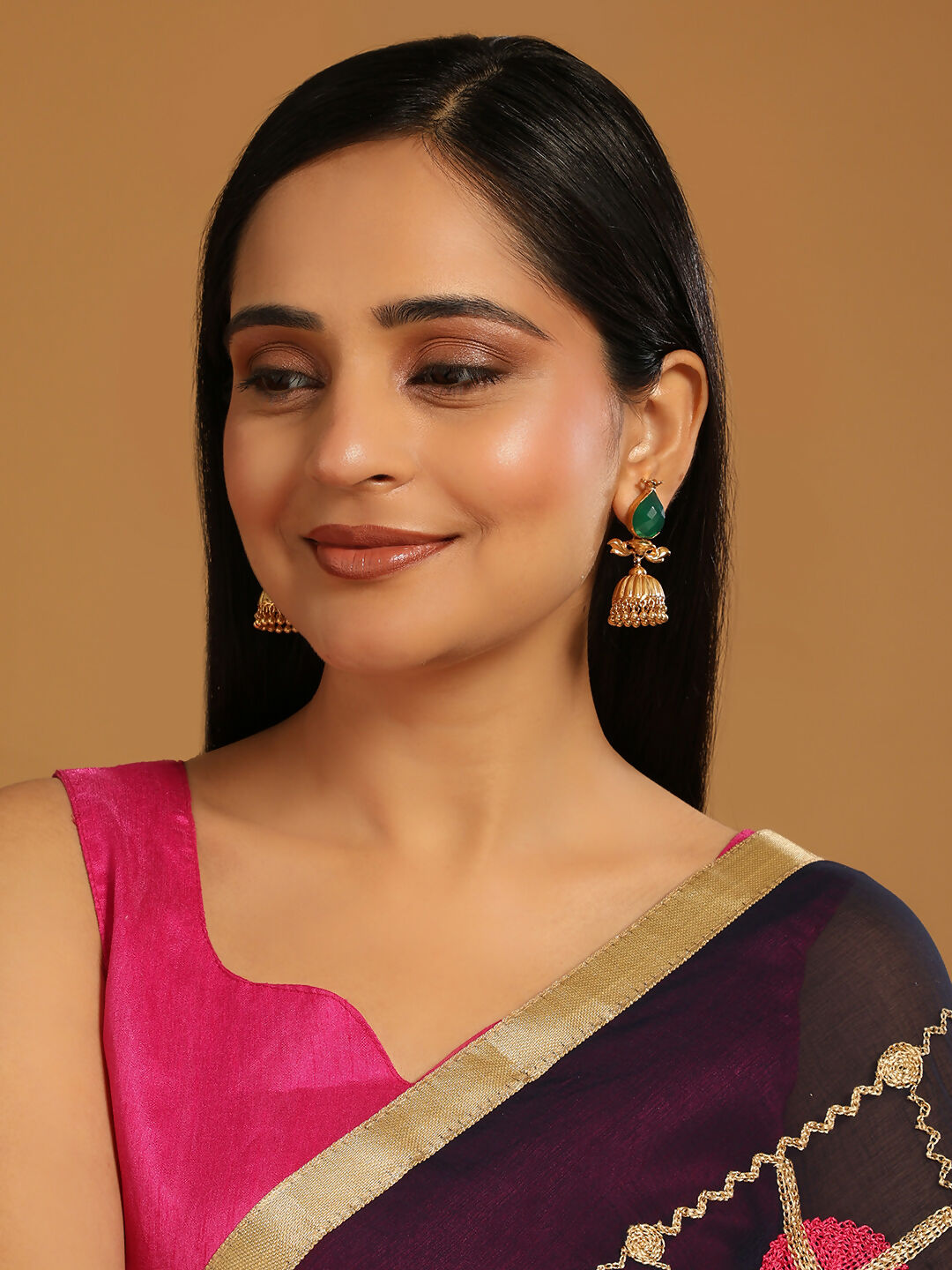 Nuyug 22K Gold Plated Emerald Stone Studded Ethnic Jhumkas