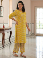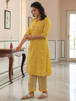 Aramya A-line Soft Cotton Butti Print Women's Kurta - Yellow - M