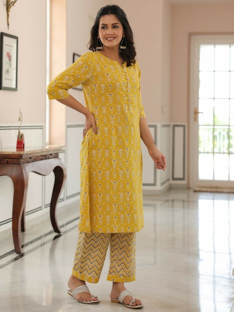 Aramya A-line Soft Cotton Butti Print Women's Kurta - YellowElevate your style with our uniquely designed kurta, perfect for daily wear or casual o...