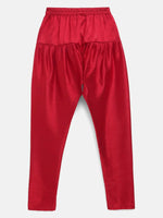 Put forward your son's best traditional look by choosing this kurta Churidar set for boys from Ahalyaa. Tailored with excellent quality fabric this outfit is bound to impress everyone around you. A fantabulous look is displayed in our Self Designed kurta. Decorated with ring snap buttons & Gold Print work. it will make you look extremely cute. This gives your child’s entire look a classy appeal. This readymade kid's attire is perfect for festive & Party use.
