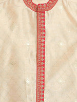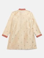 Ahalyaa Beige Poly Silk Gold Print Kids Kurta Churidar Set For Boys