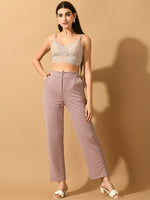 Myshka Women's Lavender Straight Fit Party Trouser