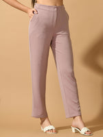 Myshka Women's Lavender Straight Fit Party Trouser Color: Lavender Bottom Type: Trousers Fabric: Lycra Lining: No Pattern: Solid Length: Ank...