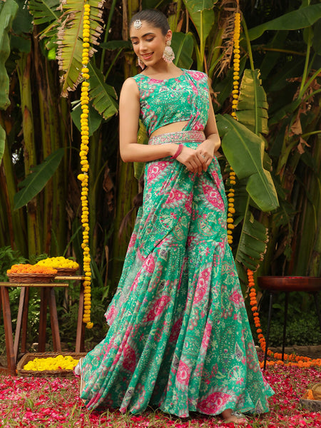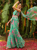 Janasya Green Georgette Floral SareeAbout the Product: Package Contains: 1 Saree Top Fabric: Georgette Top Style Type: Blouse Top Primary Color...