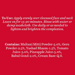 This luxurious whitening & de-pigmentation pack is blended with the juices of pineapple, tomato, lemon and papaya fruit to visibly lighten skin for a fairer, flawless look. With regular use, skin reclaims its soft, smooth, youthful tone and texture.
