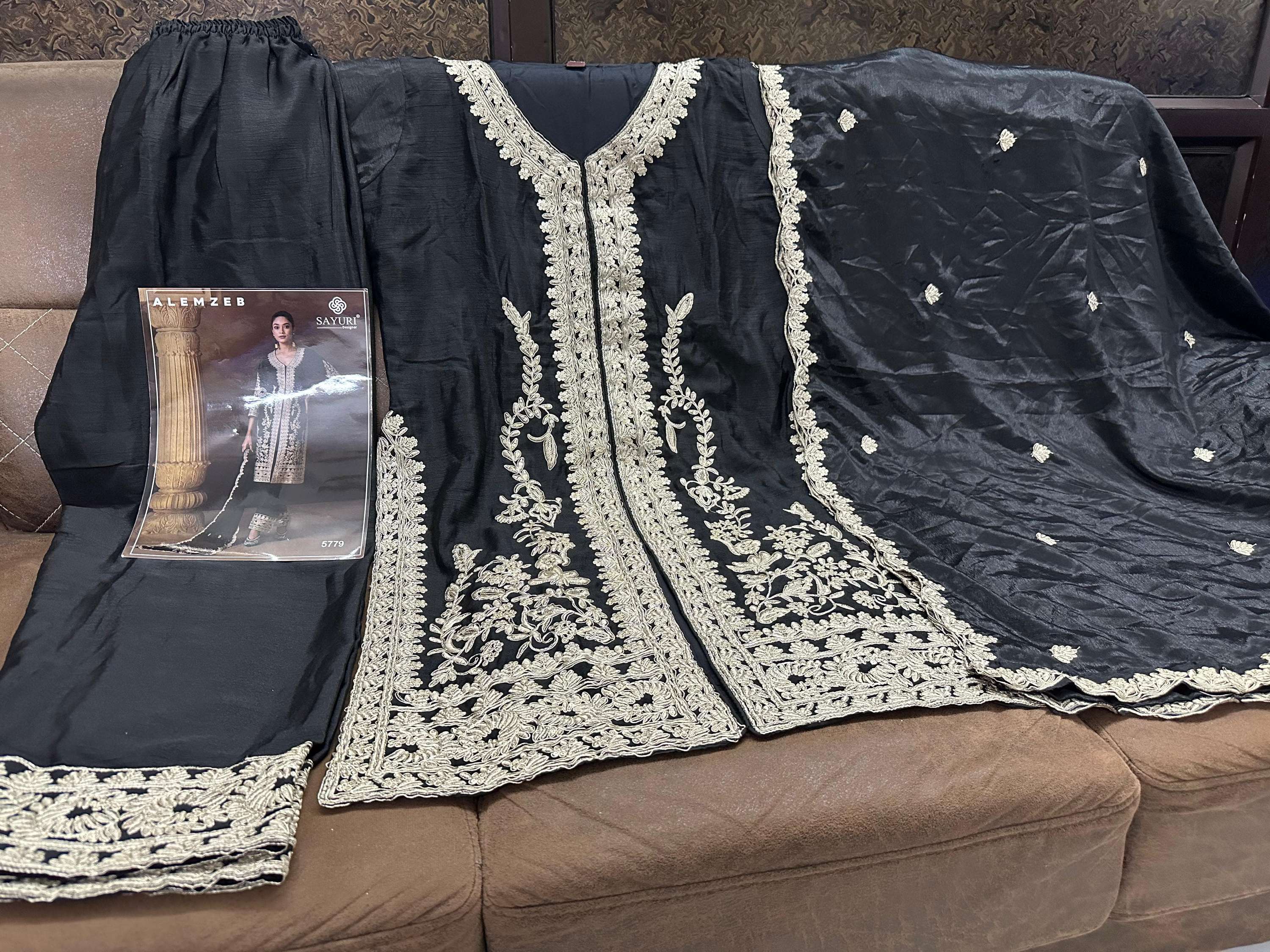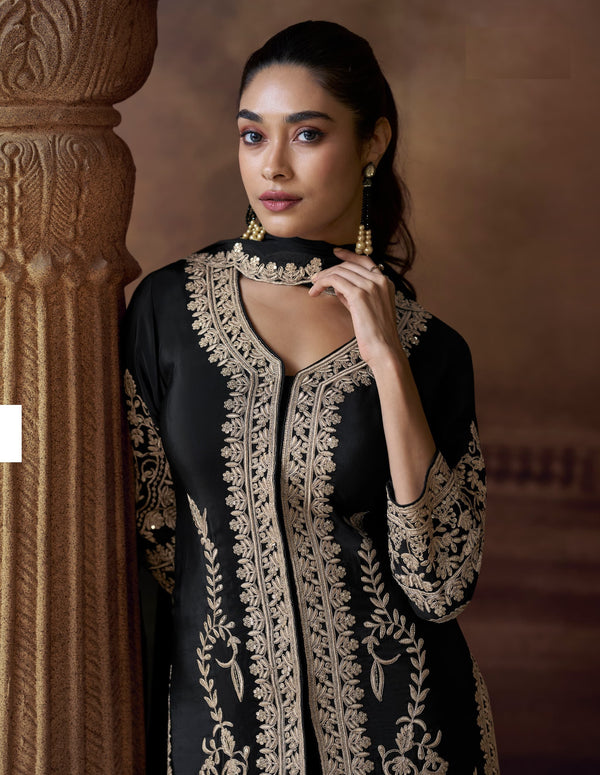 Aarshi Fashions Black Chinon Silk Suit