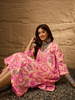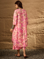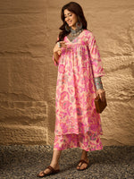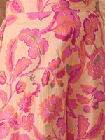 This light peach kurta set combines elegance with a playful flair, featuring a big V-neckline and a flared silhouette. Its soft pastel hue makes it a perfect choice for daytime events or casual gatherings, offering a light and airy aesthetic.