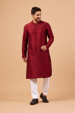 Maroon Plain Kurta by Hilo DesignThis Maroon kurta is made of falling raw silk, giving it a luxurious and soft feel. The lightweight fabric is perf...