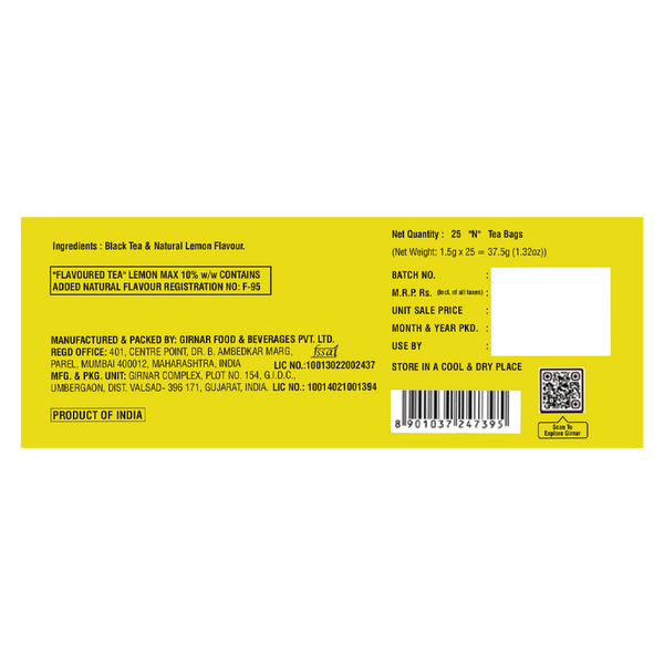 Black Tea & Lemon Natural Flavour.