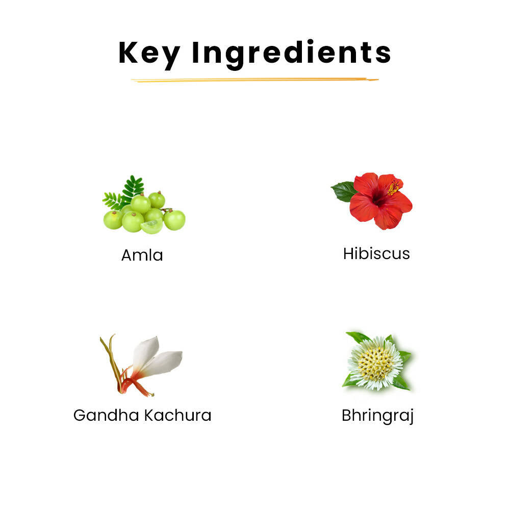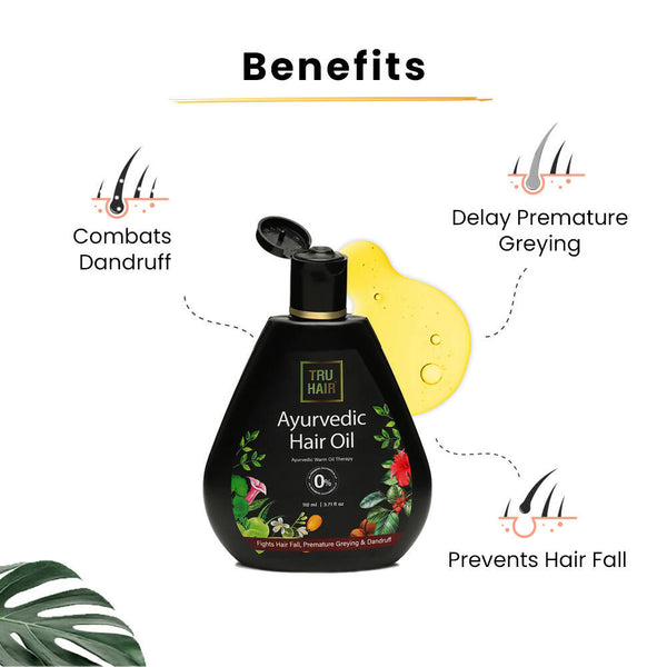 • Enriched with the goodness of rare herbs, this special formulation nourishes hair by penetrating the scalp and fights hair fall, dandruff, and premature greying, ensuring healthy, lustrous hair without making your hair greasy. Experience the magic of true Ayurveda with Tru Hair Ayurvedic Hair Oil. This Ayurvedic hair oil for hair fall and regrowth is all you need to pamper your scalp.
