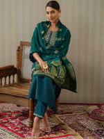 Ode by House of Pataudi Blue Ethnic Motifs Straight Kurta & Trousers With Dupatta - Distacart