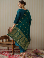 Ode by House of Pataudi Blue Ethnic Motifs Straight Kurta & Trousers With Dupatta