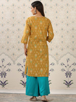 Mustard yellow & teal blue printed Kurta with Palazzos