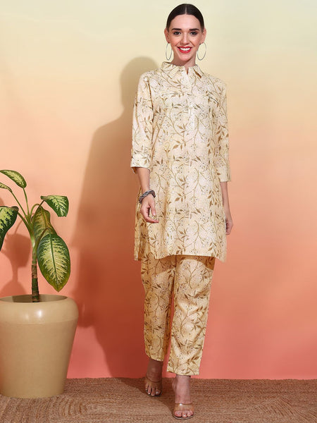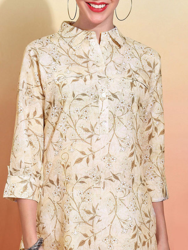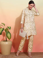 Cream-coloured printed Kurta with Trousers