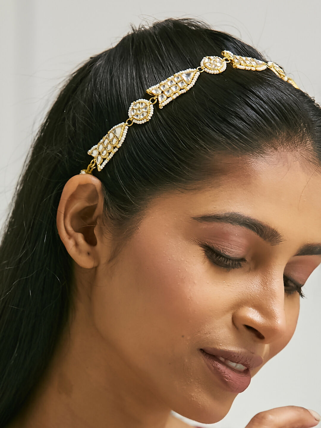 Nuyug 22K Gold-Plated Kundan & Pearls Studded Matha Patti with Regal Motifs Head Jewellery