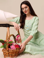 Kalini Striped Puff Sleeves Kurta with Trousers Product Details Light green striped Kurta with TrousersKurta design: Striped Straight shape Re...